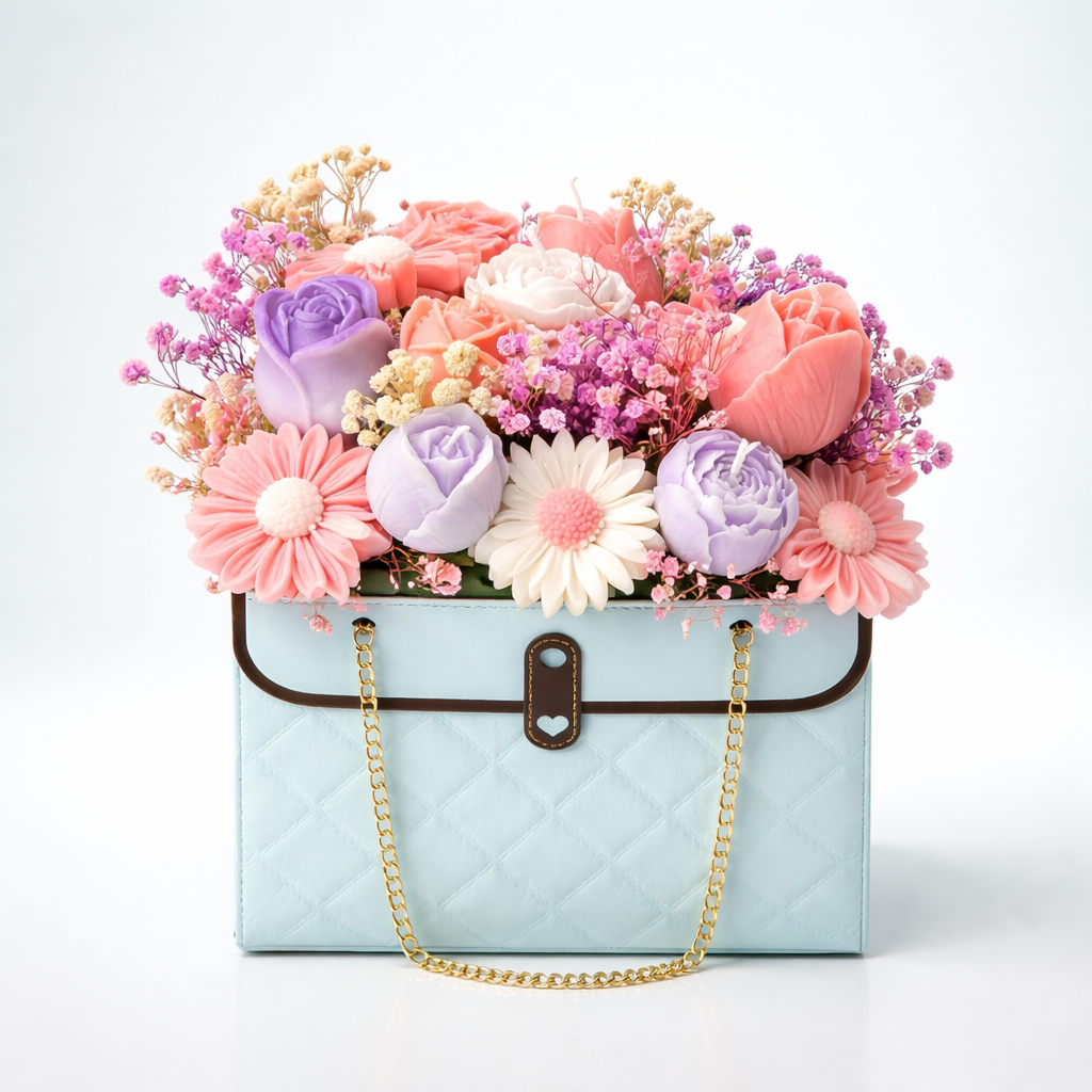 Un aranjament floral deosebit, realizat manual din ceară, perfect pentru a aduce un strop de eleganță și rafinament în orice spațiu.